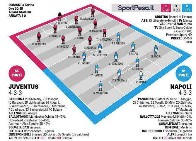 وهذه المباراة حاسمه جدا مدرب يوفنتوس في هذه الموسم لأنه سوف يواجه بعد نابولي إنتر ميلان وروما وهذان الفريقان قويان جدا ويحققان نتائج جيدا وخصوصا روما بعد تأهله على حساب برشلونة الأسباني الى دور قبل النهائي من دوري أبطال أوربا، فلابد على يوفنتوس الفوز في هذه المباراة لكي يتفاد كل هذه الحسابات المعقده فيما بعد.